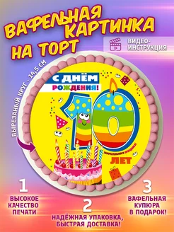 Украшения для торта Вафельная картинка день рождение 10 лет