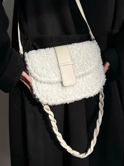 Плюшевая меховая сумка на плечо кросс-боди коричневая