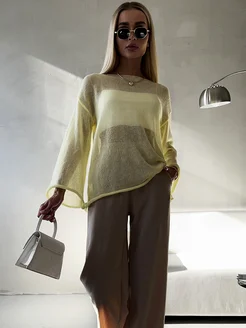 Свитер паутинка тонкий оверсайз кофта вязаная
