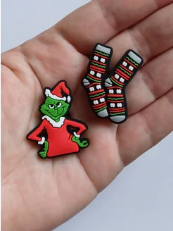 Джибитсы на crocs гринч набор jibbitz новогодние носки