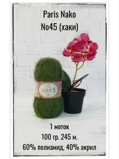 Пряжа для вязания пушистая Paris 45 хаки 1 моток