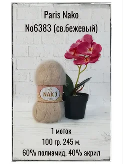 Пряжа для вязания пушистая Paris 6383 светло-бежевый 1 моток