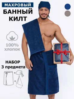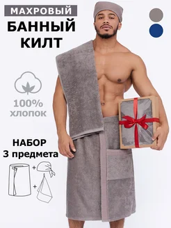 Килт банный махровый с банданой и полотенцем, 3 шт. набор