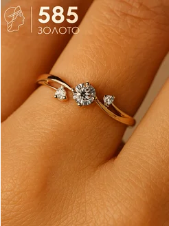 Кольцо золотое с фианитом 585 ювелирное украшение
