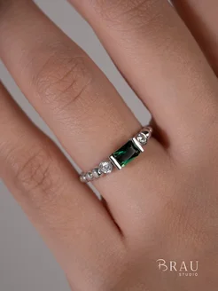 Кольцо серебряное "BAGUETTE с турмалином синт."