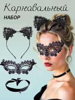 Набор карнавальный с маской, ободком и чокером