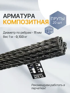 Арматура стеклопластиковая 12 ТУ (D 11мм) пруты 20 шт. 1,2м