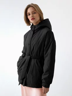 Куртка весна с капюшоном и поясом удлиненная оверсайз