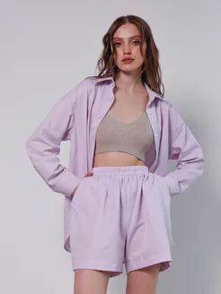Костюм летний с шортами и рубашкой повседневный оверсайз