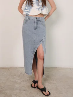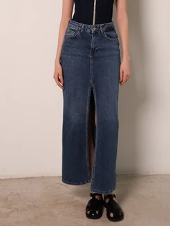 Юбка джинсовая миди с разрезом спереди оверсайз
