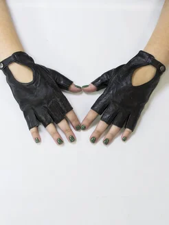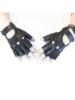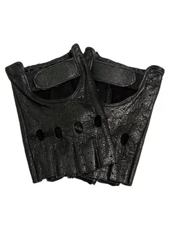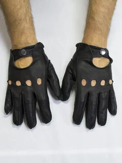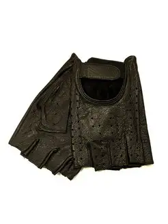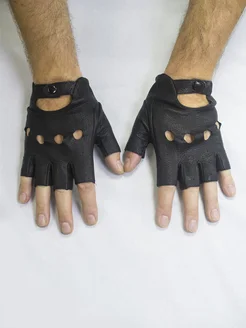 Мужские перчатки без пальцев чёрные на кнопке с перфорацией