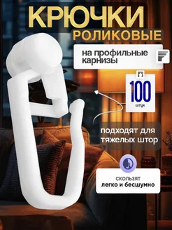 Крючки для штор к потолочным карнизам роликовые 100 штук