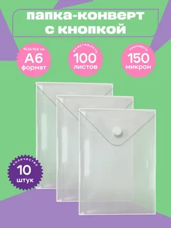 Папка канцелярская А6 на кнопке конверт 10 штук