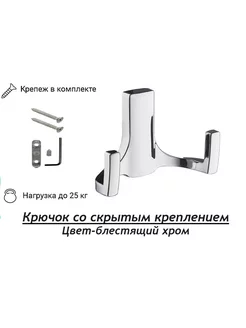 Крючок настенный двойной со скрытым креплением,матовый хром
