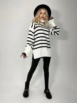 Свитер женский удлиненный оверсайз джемпер в полоску