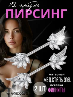Пирсинг серьга в пупок с фианитом сердце крылья