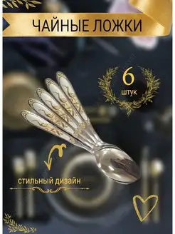 Набор столовых ложек с золотым рисунком аист 6 шт