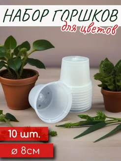 Набор маленьких горшочков 10 штук диаметр 8см для растений