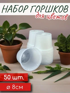 Набор маленьких горшочков 50 штук диаметр 8см для рассады