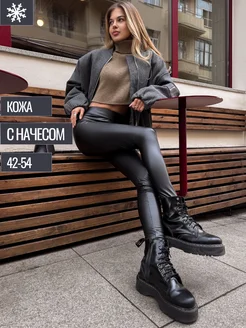 Леггинсы из экокожи утеплённые лосины кожаные зимние