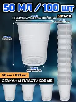 Стаканы одноразовые пластиковые прозрачные 50 мл 100 шт