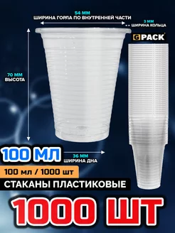 Стаканы одноразовые пластиковые 100 мл 1000 шт. Уп
