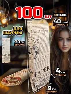Крафт пакет под шаурму упаковочный 90х40х300 Газета 1х100 шт