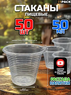 Стаканы одноразовые пластиковые прозрачные 50 мл 50 шт. СЦ