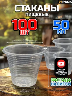 Стаканы одноразовые пластиковые прозрачные 50 мл 100 шт. СЦ