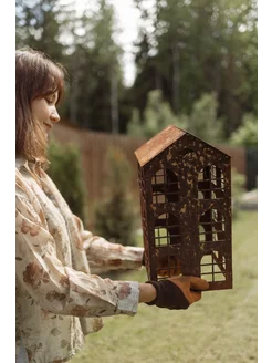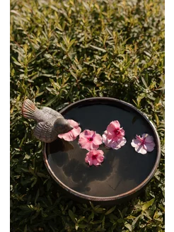 Садовый декор Поильник-кормушка с воробьем для птиц