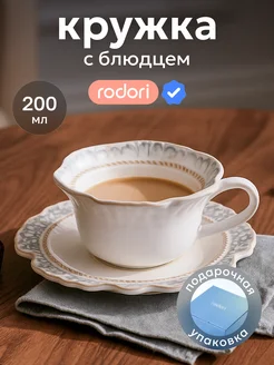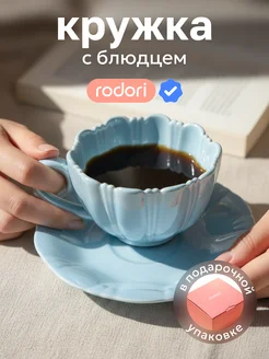 Чайная пара подарочная, кружка с блюдцем, чашка жемчужная