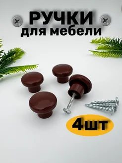 Ручка мебельная кнопка 30шт коричневый пластик