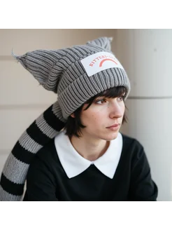 Шапка с ушками и хвостом бини для подростка корейская