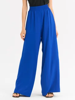 Брюки палаццо широкие прямые, на резинке, летние