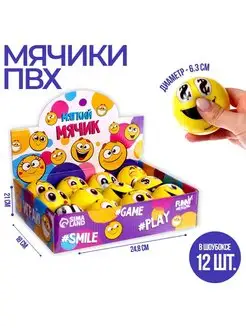 Мягкий мячик Смайлы, 6,3 см. 1 шт