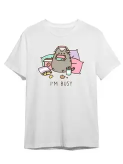 Футболка Кот Пушин Я занят Аниме Комикс Стильный принт