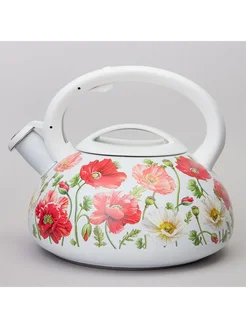 Чайник Agness Белые маки 3л со свистком нержавейка