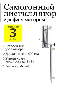 Дефлегматор 3 дюйма с узлом отбора + доохладитель 400 мм