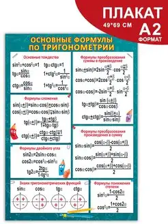 Плакат обучающий настенный Основные формулы по тригонометрии