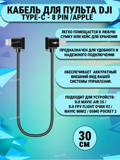 Кабель для пульта DJI, Type-C - 8 pin (для apple), 30 см