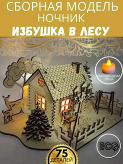 Деревянный 3D конструктор - ночник "Избушка в лесу"
