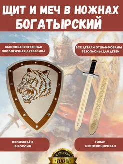 Богатырский меч в ножнах и щит деревянный(ЭКО)
