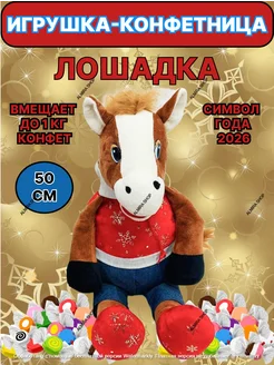 Мягкая игрушка конфетница новогодняя лошадь 50 см