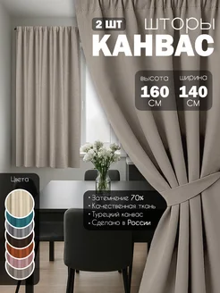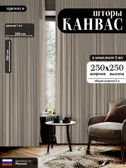 Шторы в спальню в зал плотные 2 шт канвас 250х250 однотонные