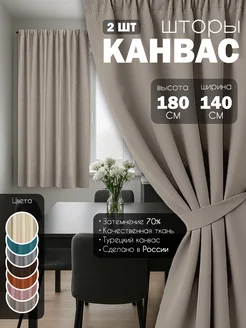 Шторы в спальню в зал плотные 2 шт канвас 200х240 однотонные