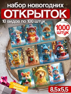 Открытки Спасибо за покупку Новый год МиксЗвери 1000 шт