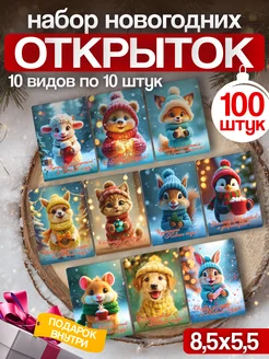 Открытки Спасибо за покупку Новый год Звери 100 шт