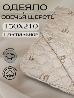 Одеяло 1.5 спальное 150х210 см из овечьей шерсти