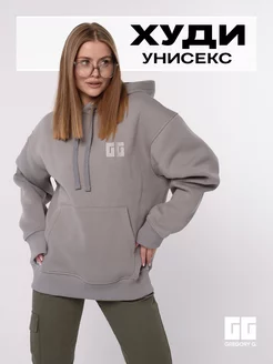 Худи с капюшоном утепленное на флисе серое