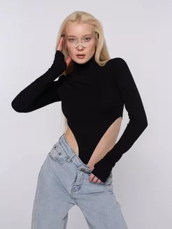 Боди водолазка с вырезом и длинным рукавом